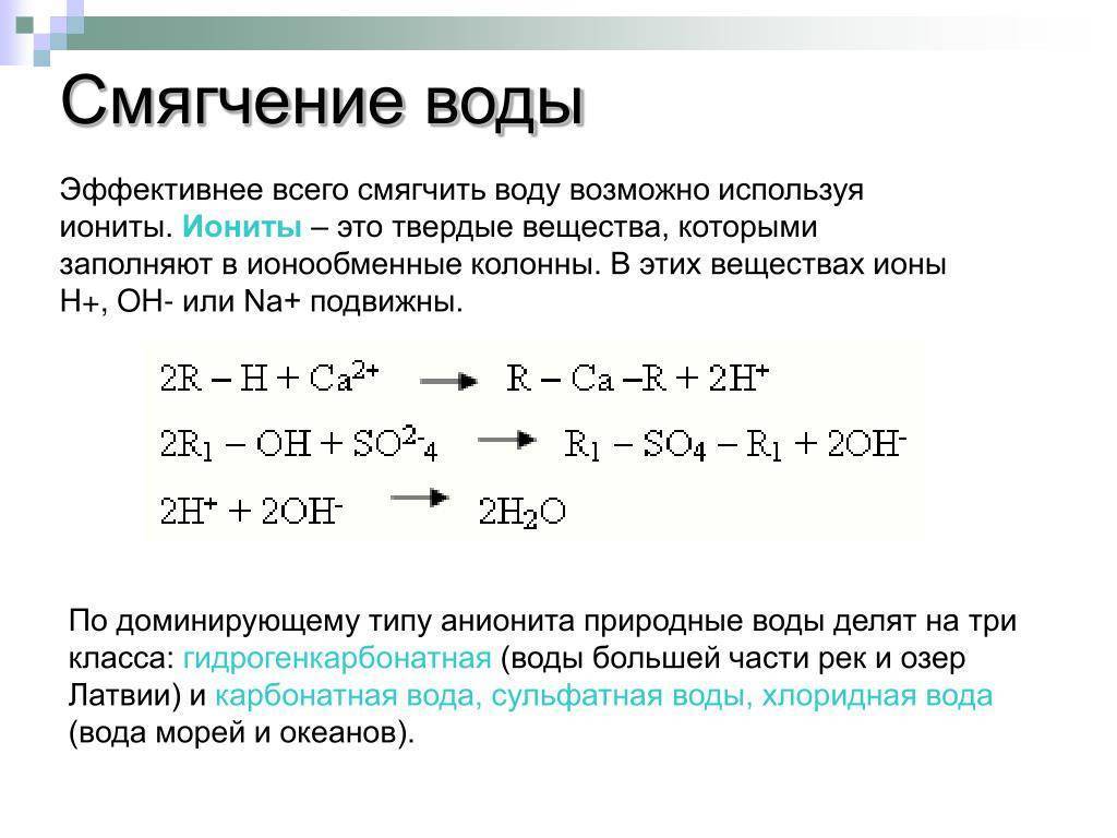 Использование метода предполагает замещение ионов кальция и магния ионами натрия. Вещества растворимы, при этом не влияют негативно на здоровье.