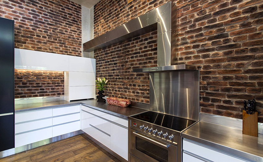 Создать эффект каменной текстуры на трубах вытяжки можно с помощью специальной краски или обоев с имитацией камня. Это добавит интересный текстурный элемент и подчеркнет естественность материалов в кухне.