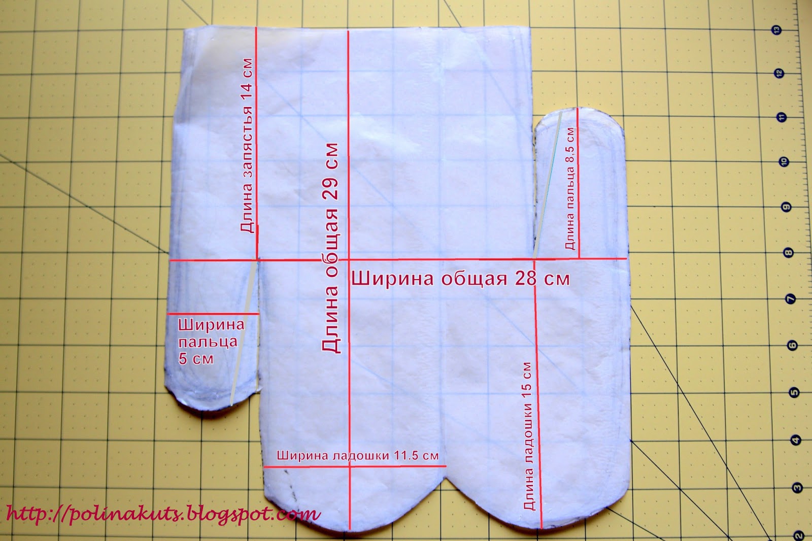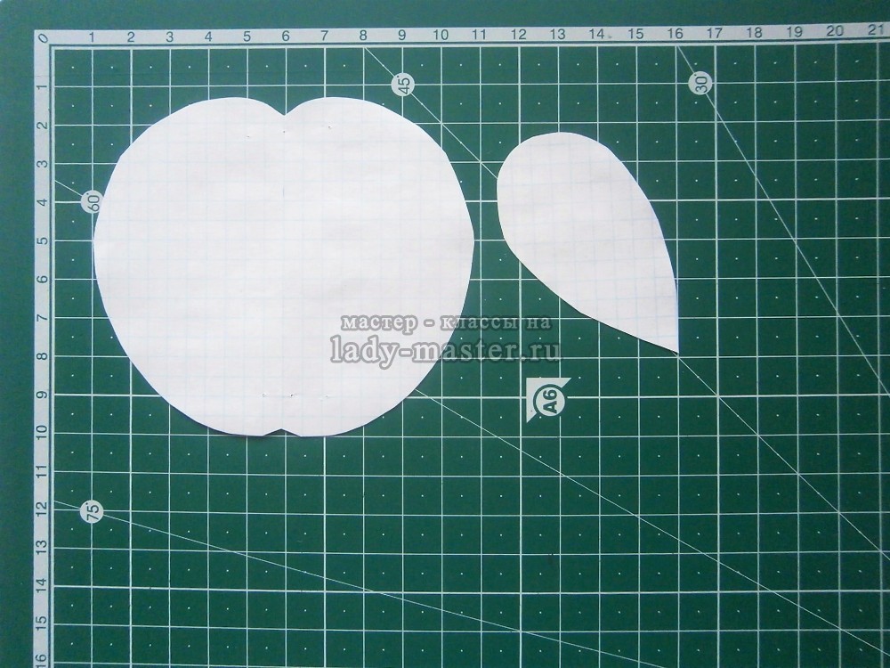 Механизм создания не отличается от выше описанных. Размеры выкройки указаны на картинке. Калька необходима для того, чтобы рисунок на бумаге сразу перенести на ткань.