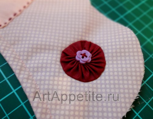 Стягиваем к центру, фиксируем, закрываем срезы пуговицей.