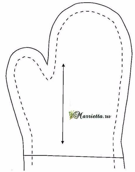 - Осталось пришить петлю из отделочного материала. Рукавичка готова!