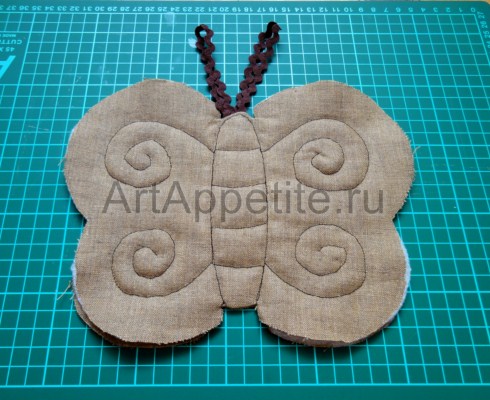 - Из тесьмы или канта сделайте две петельки (усики).