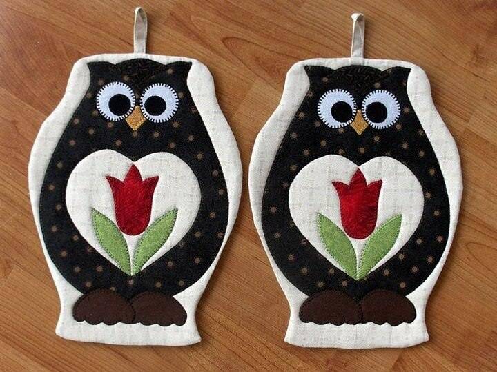 Расцвет техники пэчворк привел к созданию настоящих шедевров – ручные стежки и блоки можно рассматривать часами. В 1920-е годы прихватки стали делать из кружева, и они были просто Потом пришла мода на такие мотивы, как машины, животные, фрукты и цветы. Позднее можно было шить целые кухонные ансамбли в едином стиле. В 1950-е годы наступил настоящий бум, когда журналы стали печатать интересные схемы и рисунки прихваток. Их стало модно коллекционировать и дарить знакомым и родным.