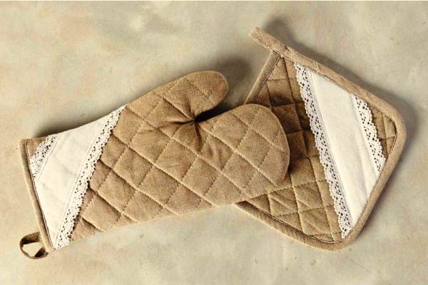 Наилучший выбор для кухонных прихваток – натуральные ткани наподобие ситца, хлопка или льна. Чем плотнее ткань, тем проще будет брать горячую посуду