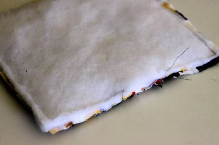 - Внутренний слой, наполнитель, должен быть значительный. Лучший вариант — лиственный синтепон. Как вариант, если дома есть махровые полотенца или старые толстовки, их также можно использовать.
