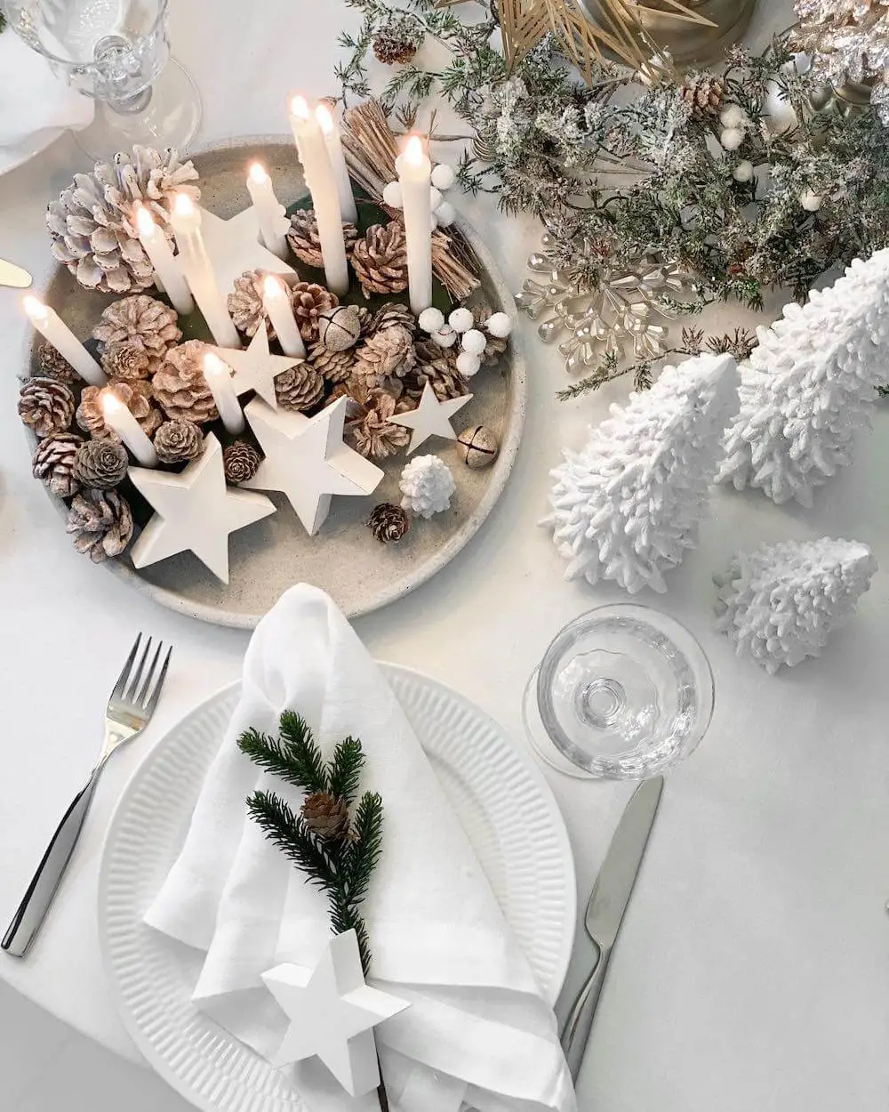 Если вы хотите создать красивую новогоднюю сервировку стола, то обратить внимание на естественные элементы декора будет хорошим выбором. Ведь они не только выглядят красиво и не слишком ярко для новогоднего стола, но и могут создать настроение праздника