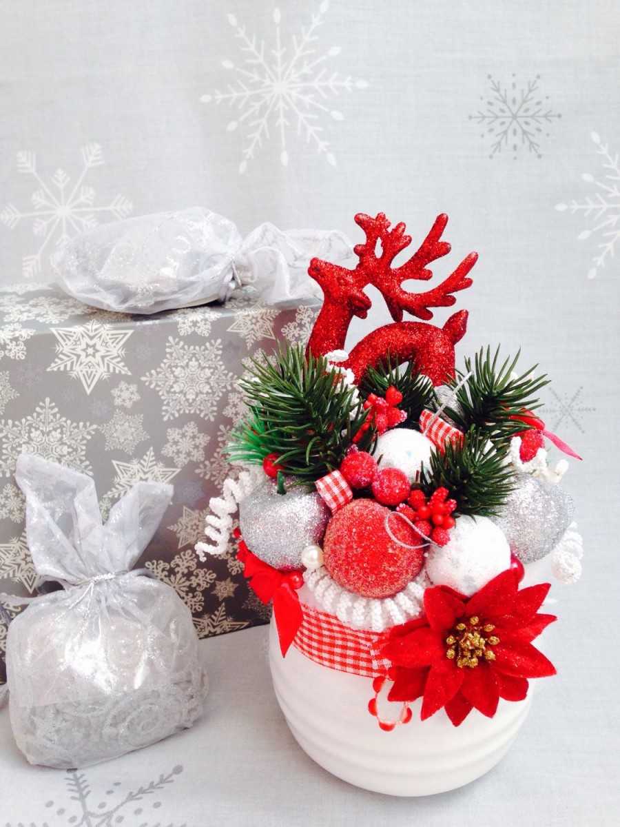 Сложные новогодние композиции из большого количества материалов создают флористы, а простую икебану под силу сделать своими руками и новичкам.