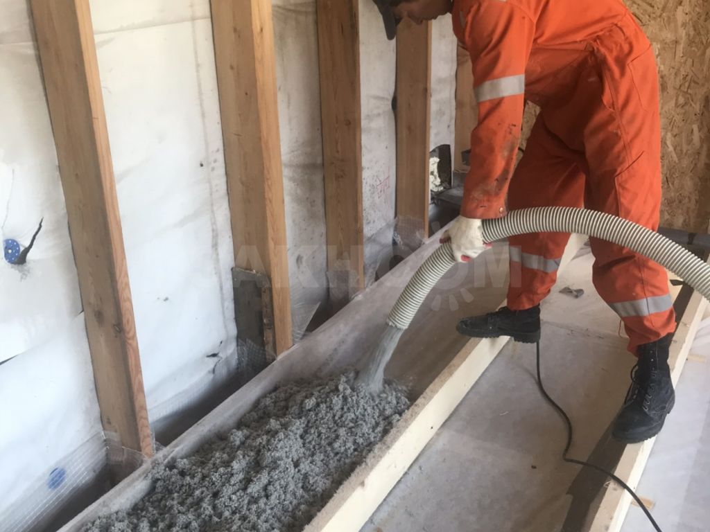 В процессе сухой задувки экаваты за счет воздушных масс проникающих в полость вместе с материалом увеличивается давление в проеме между стеной и отделкой. Поэтому такой метод подходит не ко всем конструкциям.