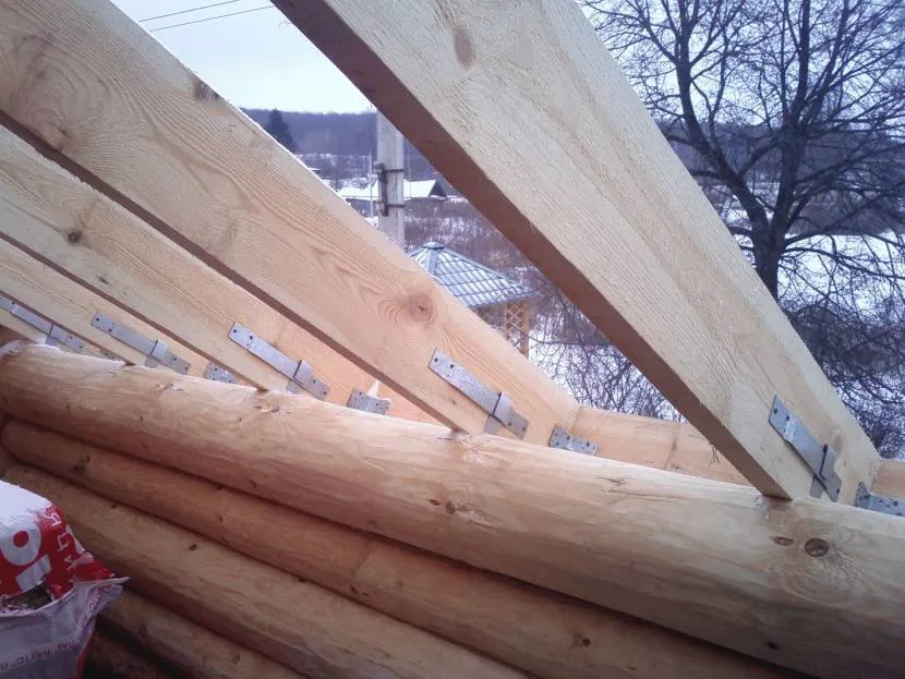 Стропила на бревенчатой стене баниИсточник krovlyaikrysha.ru