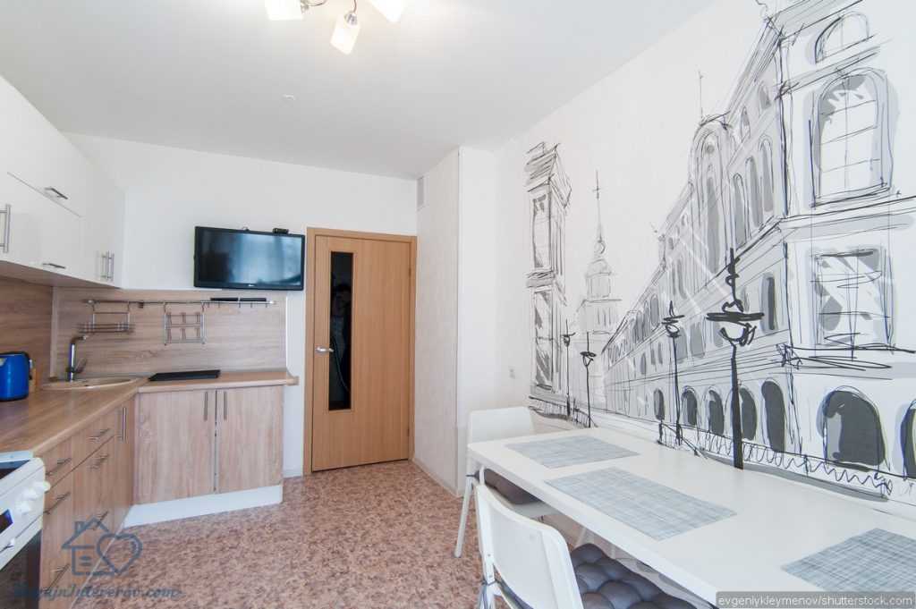 - Использование фотообоев — может показаться, что рисунок фотообоев, наоборот, визуально уменьшит площадь, но это не всегда так. Не стоит останавливать выбор на ярких фотообоях с изображением ночного города, например, — такой вариант подходит для больших помещений. Стены маленькой кухни необходимо оформить фотообоями с неброскими контурами города, сада, уходящей вдаль дорожки и так далее.