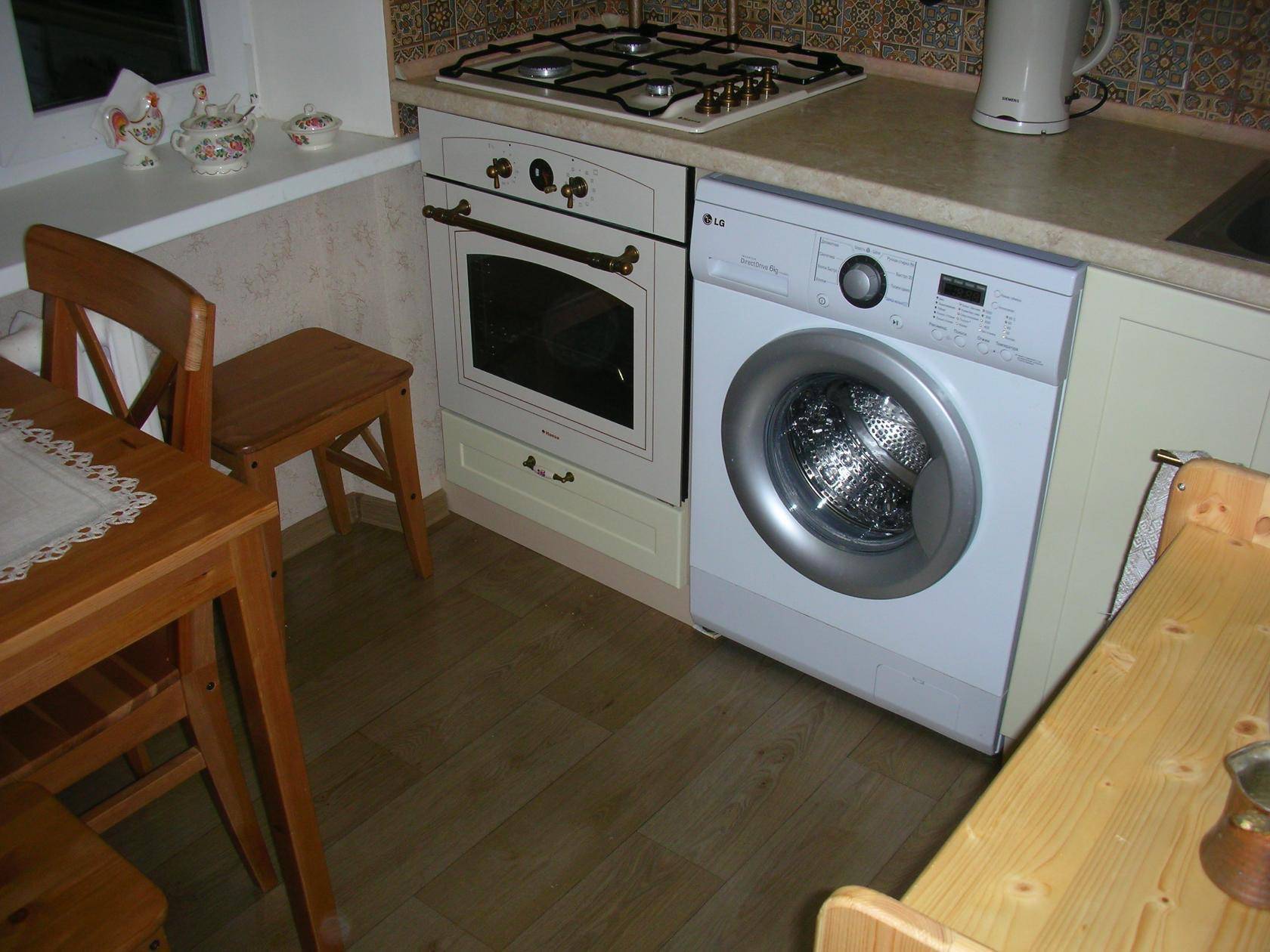 Стиральная машина спрятана за дверцей кухонного гарнитура