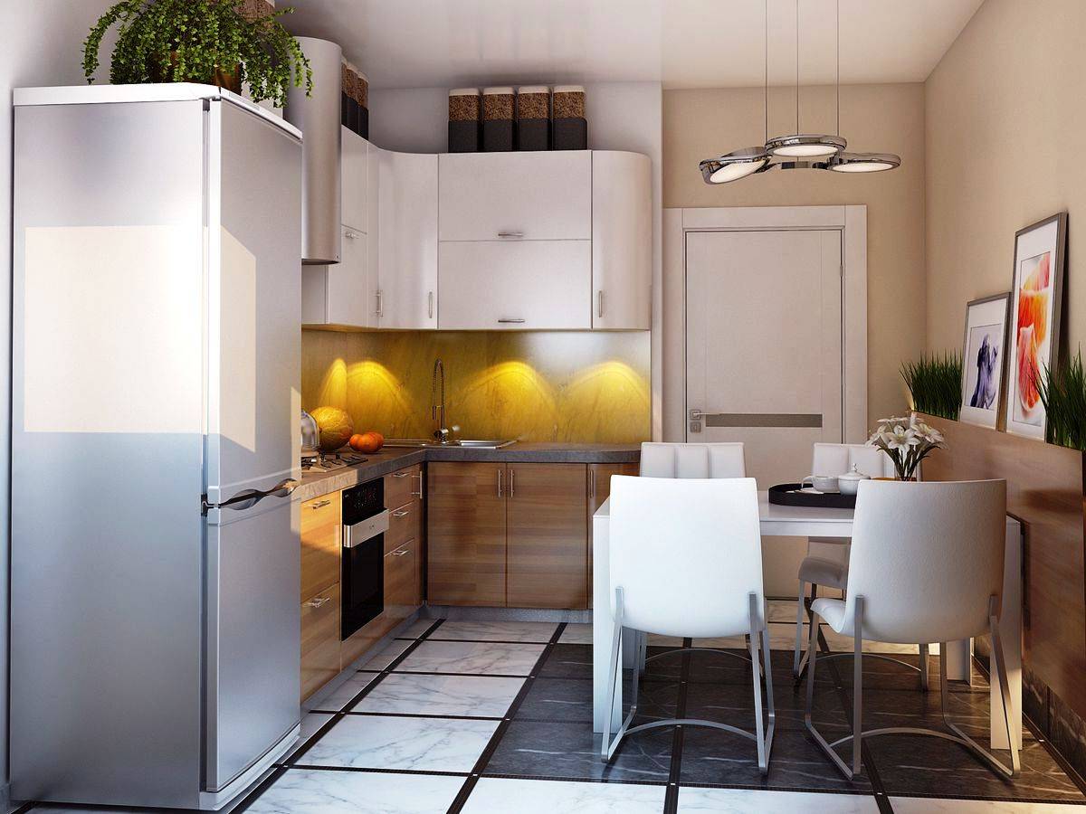 Дизайнерское оформление маленькой кухни и кухонного стола со стульями