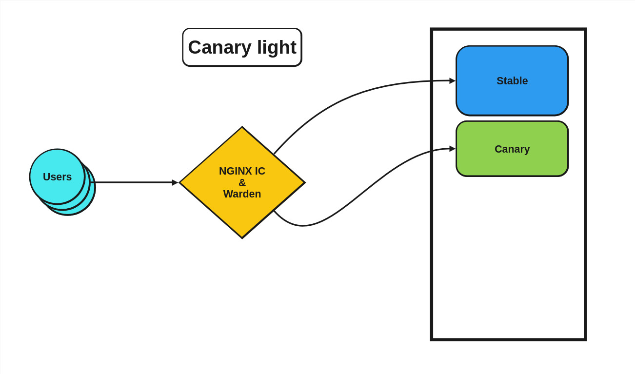 Из-за этого, когда мы начинали удалять поды старого релиза, трафик либо не успевал уйти с новых подов, либо продолжал идти на IP адресса, за которыми уже не было подов, которые могли бы его принять. Мы не нашли как это можно было быстро исправить, поэтому решили что просто не будем внедрять механизм «лёгкой канарейки» в сервисы, у которых входящий трафик проходит через NGINX, а внедрим только в те, где он идёт через Warden. В долгосрочной перспективе мы начали процесс уменьшения количества ингрессов за счёт удаления неиспользуемых.