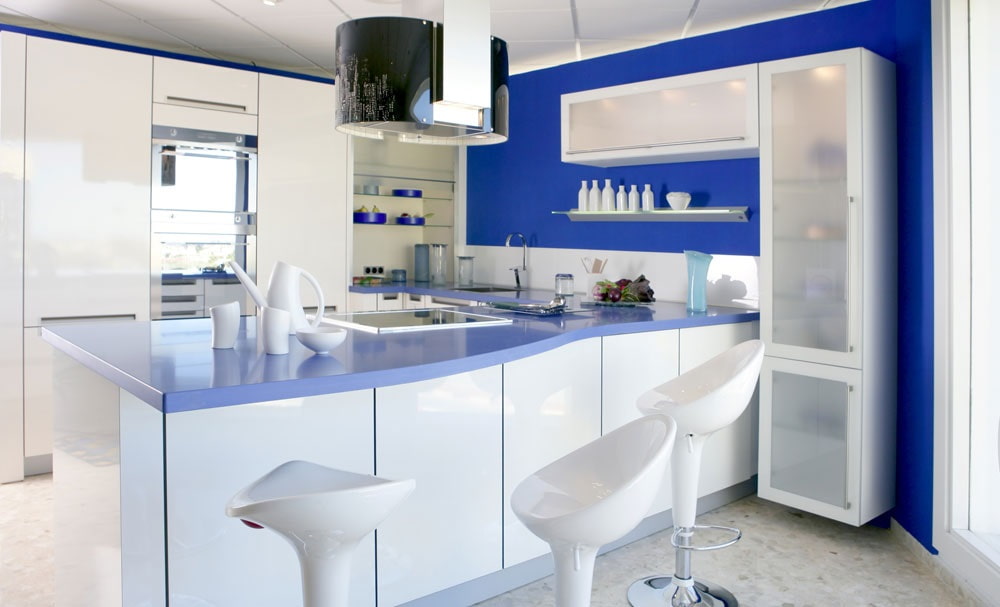 Это сочетание будет идеальным для кухни любого размера. Синий считается цветом неба и выражает глубину океана. Хотя это оттенок холодной палитры, он придает интерьеру легкость форм и изысканность, которая обеспечивает расслабление и спокойствие.