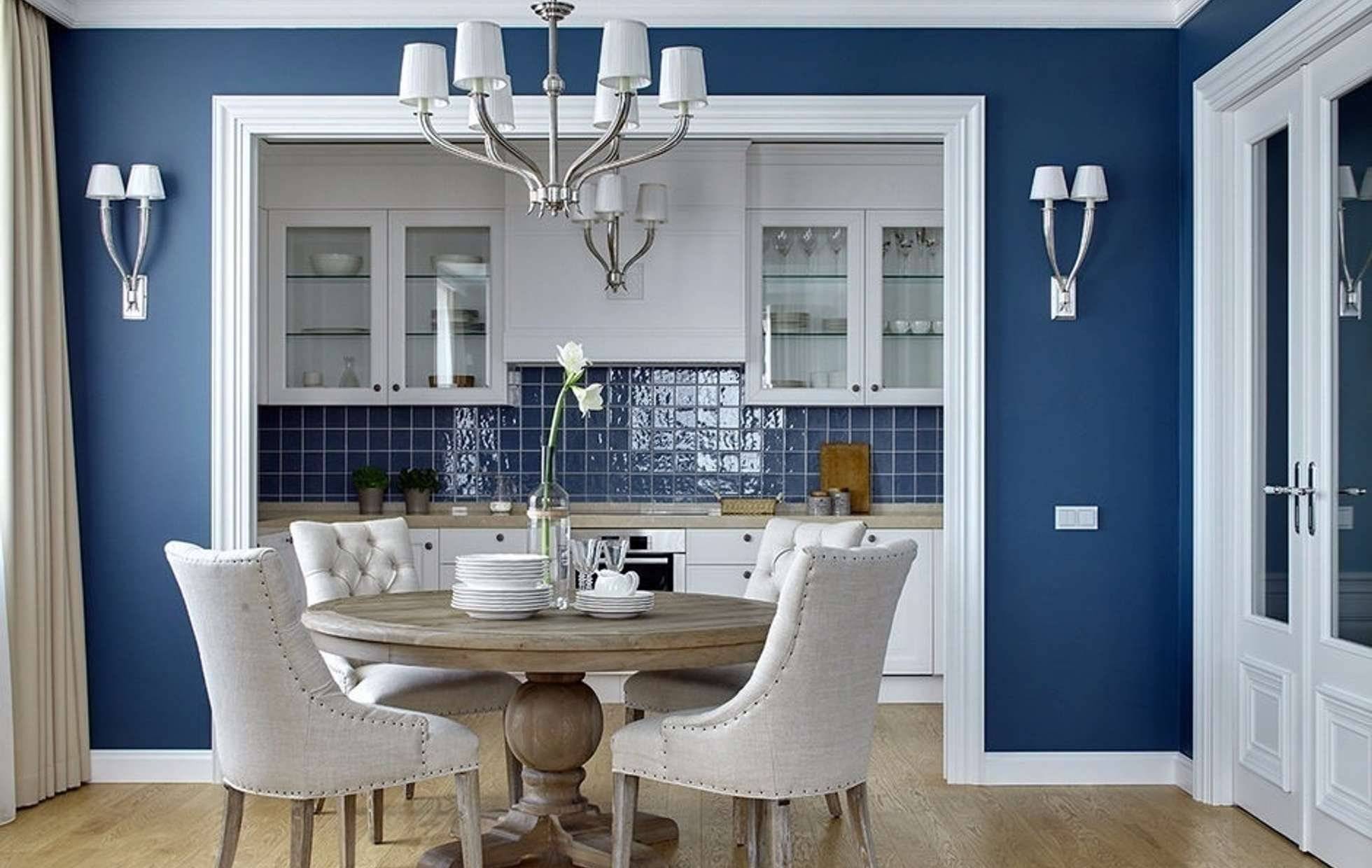 Синий. Строгий синий цвет подойдет для оформления просторных помещений или для создания акцентов на стенах с более светлым оттенком. Холодный оттенок отлично компенсирует избыток дневного света на солнечной стороне.