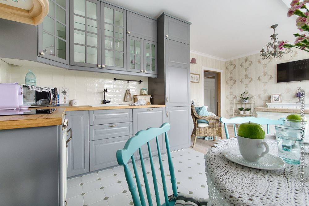 Холодные цвета подходят для кухни не меньше, чем уютные теплые. Синяя, голубая и сиреневая палитра гармонично впишутся в хай-тек, прованс, классический и средиземноморский стиль. Но если в помещение редко заглядывает солнечный свет, выбор холодной гаммы противопоказан. Также, если в нем мало окон, обстановку лучше оформить в теплых оттенках: оранжевых, желтых, бежевых и древесных. Они подойдут для современного стиля, кантри и лофта.