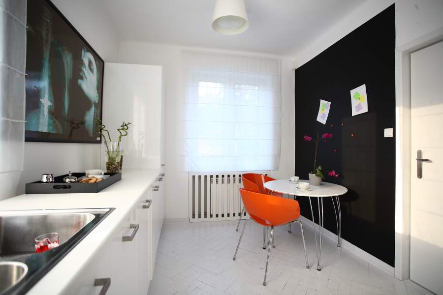 Зеленые тона, как правило, должны успокаивать и снимать стресс. Белый — придает кухне ощущение воздушности. А не превратить кухню в больничную палату поможет разбавление фона яркой мебелью и аксессуарами.