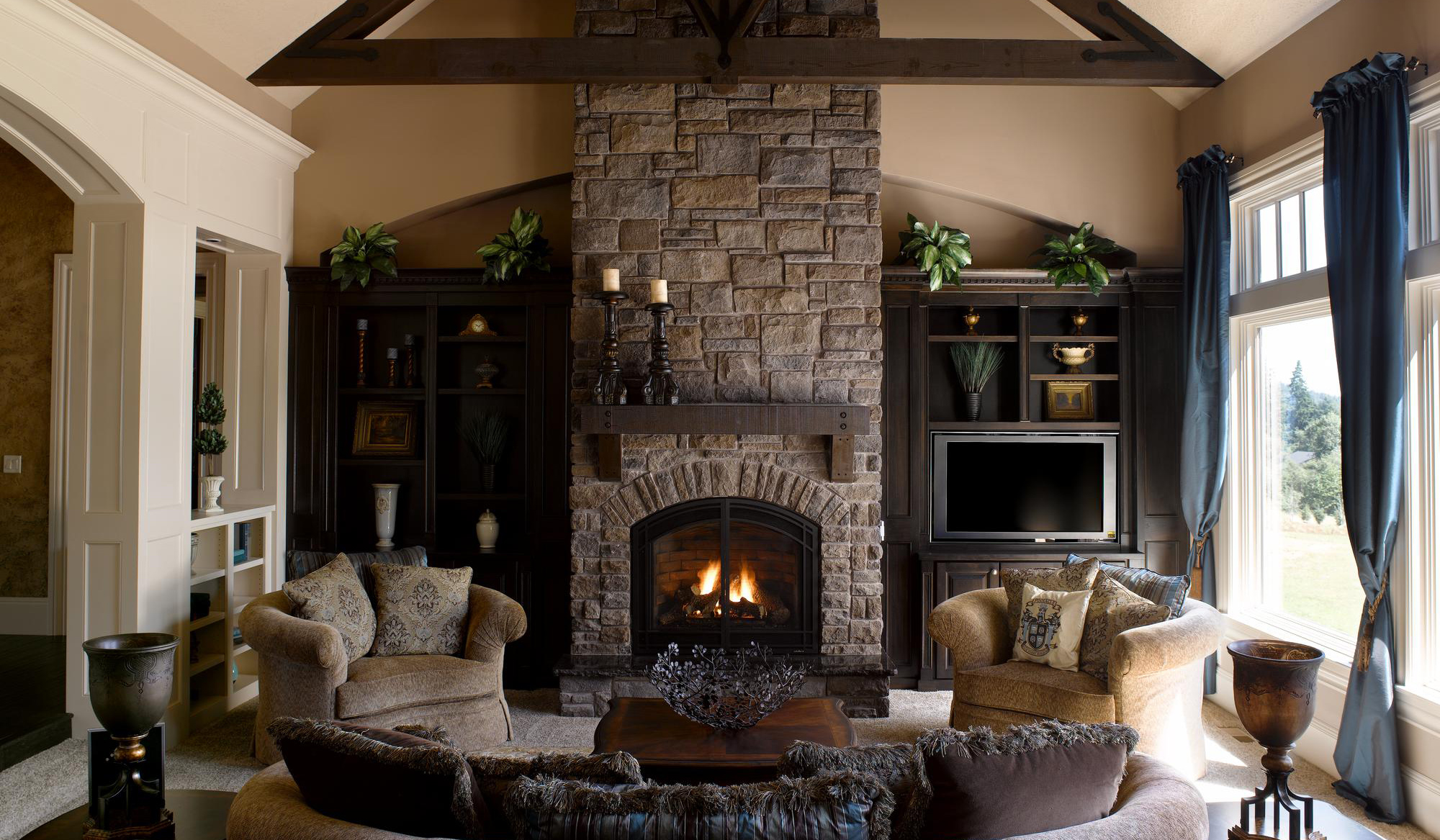 В комнатах, где стены украшены декоративным камнем, органично смотрится мягкая кожаная мебель, длинноворсовые ковры на полу и мягкая драпировка на окнах. Однако выбор деталей дизайна определяется выбранным стилем комнаты.
