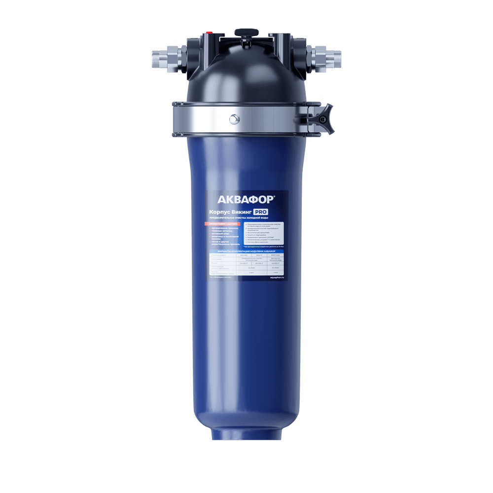 В каталоге бренда представлены различные варианты оснащения этапа магистральной обработки воды. Долговечный предфильтр Аквафор для горячей воды со стальным корпусом предлагают в серии Викинг. Компоненты конструкции скреплены хомутом, который обеспечивает надёжность соединения и простоту разборки. Выпускают 3 типоразмера, поэтому поиск подходящего полезного объёма не вызывает затруднений.