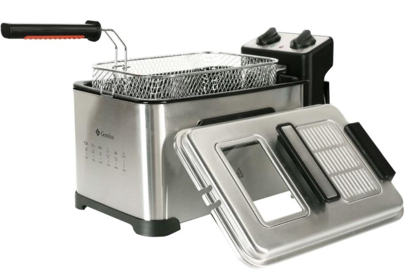 Gemlux GL-AF-15 — лучшая в своем роде. В рейтинге фритюрниц для дома со съемной чашей занимает почетное первое место. Данная модель предназначена для жарки продуктов практически без добавления масла. Подходит для приготовления картошки, рыба, мяса, креветок, куриных крылышек и бедрышек.