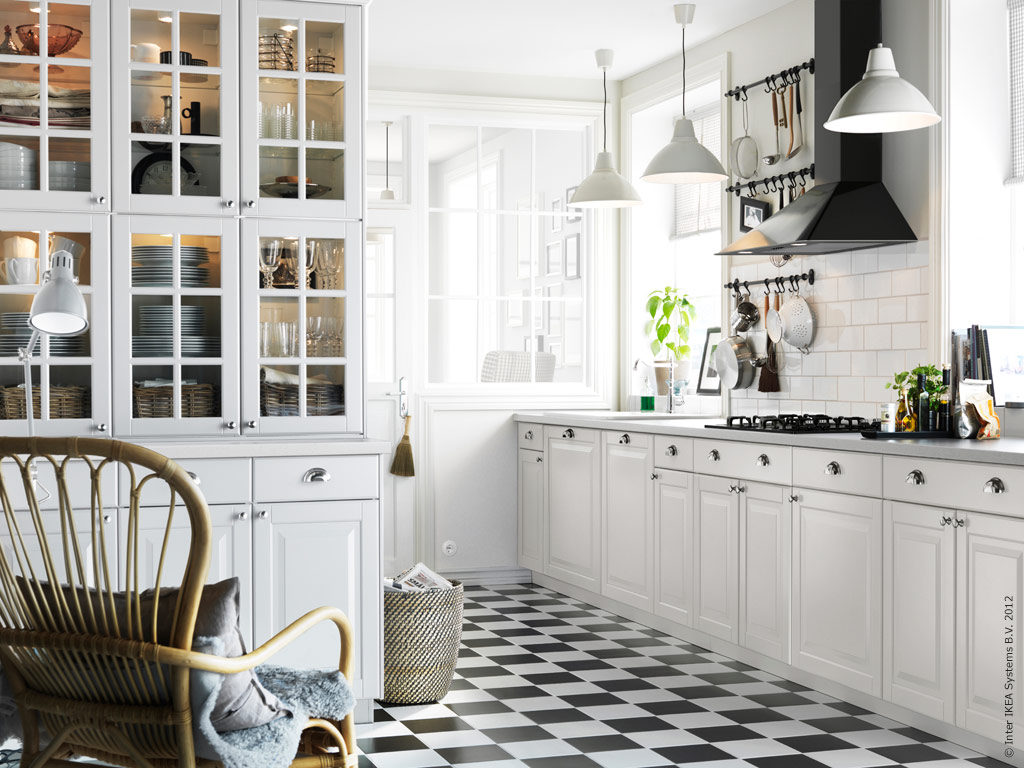 Подвесной кухонный шкаф может стать местом, где можно выставить декоративную посуду. Все, что вам нужно сделать, это выбрать застекленный фасад – с прозрачной или полупрозрачной отделкой. Стоящий кухонный шкаф, в свою очередь, является лучшим местом для хранения кастрюль или чистящих средств.