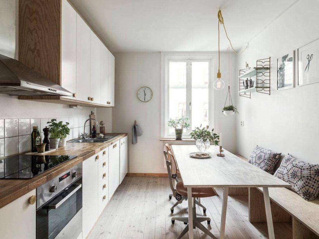 Много фото и идеи по адаптации под реальные квартиры: интерьер кухни в скандинавском стиле.