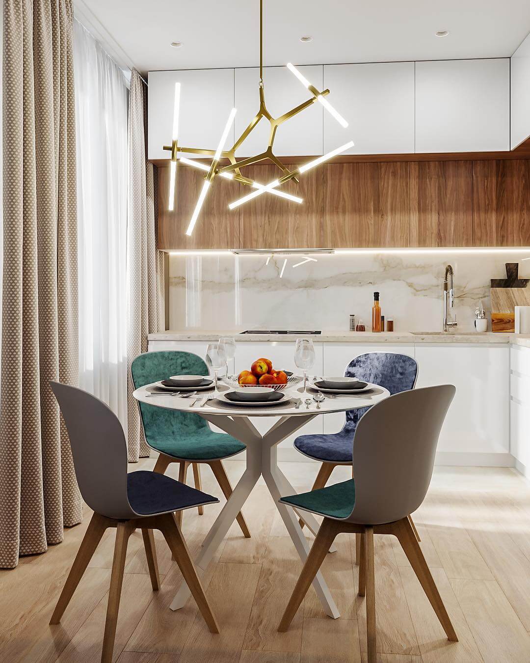 На самом деле, применение слишком большого количества белого цвета на кухне такого размера может привести к тому, что она будет казаться скудной, а это означает, что светлые оттенки должны быть сбалансированы с более теплыми и темными тонами.
