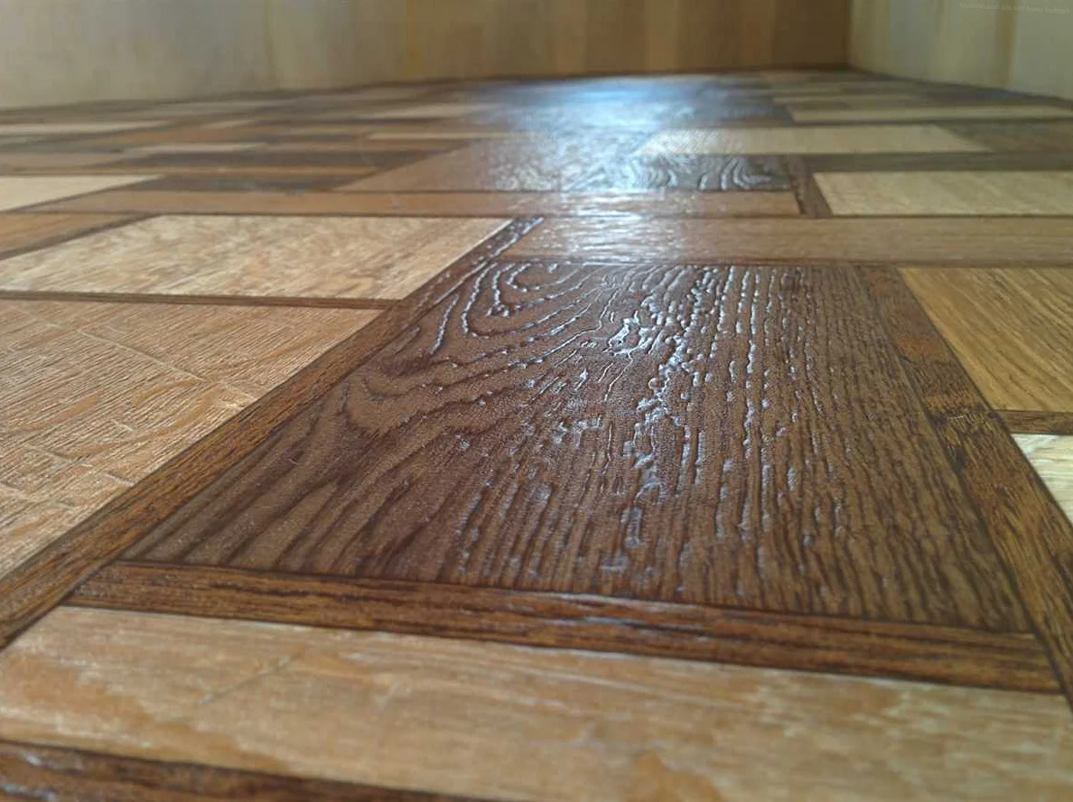 Большим спросом пользуется линолеум, имитирующий мозаику по дереву и доски из массива.