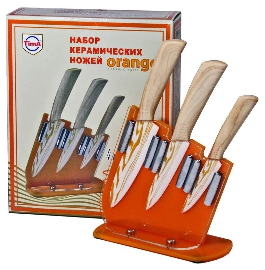 Яркий оранжевый набор из 3 ножей небольшой длины. В составе универсальный, поварской (шеф), для очистки овощей и фруктов. Поможет нарезать рыбу и мясо без костей, приготовить салаты или нашинковать зелень.