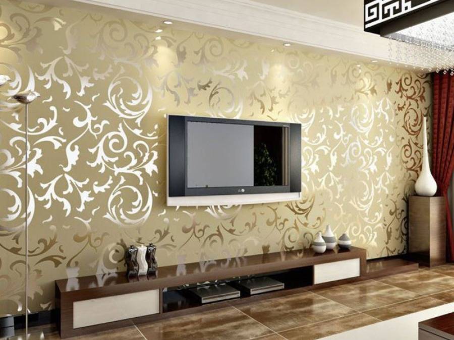 Виды настенных обоев для зала: фото