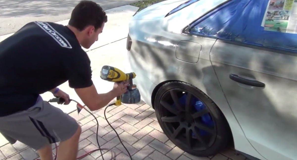 Из недостатков способа стоит отметить высокий расход сжатого воздуха и необходимость в установке фильтров очистки. Кроме того, для качественной покраски устройство должно иметь мощный компрессор, а ЛКМ наносить на расстоянии 12-15 см. Метод подойдет для отделки машины в гараже.