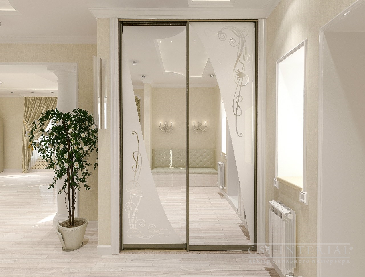 Зеркальный шкаф купе в дизайне прихожей комнаты