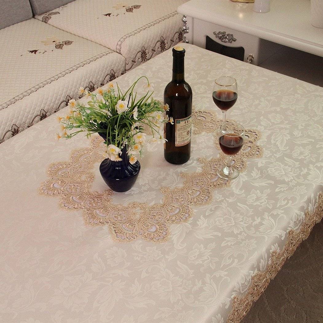 Как правило, скатерть должна свисать за пределы столешницы. При покупке нужно сделать специальный припуск, который должен быть не меньше 20 сантиметров. Если вы приобретаете изделие, изготовленное из натуральной ткани, то следует учесть возможность усадки.