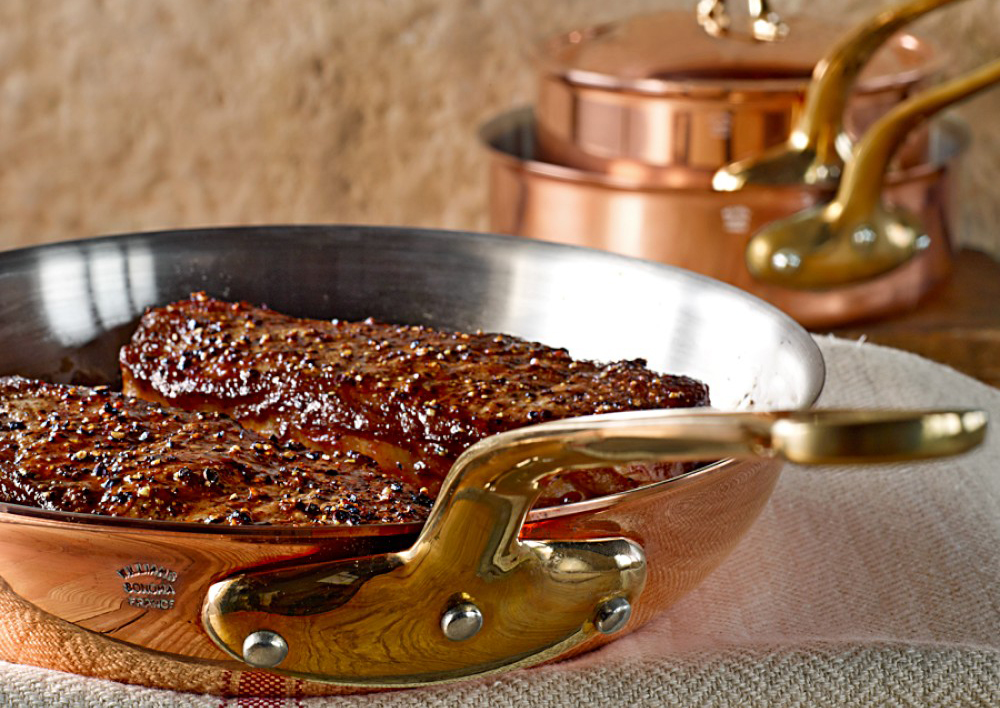 Эта популярная модель пользуется повышенным спросом среди европейских покупателей во многом благодаря потрясающему дизайну. В основе лежит использование инновационной технологии. Для изготовления используется сплав на основе меди (90%) и нержавеющей стали (10%). За простоту в последующем уходе отвечает защитное покрытие на основе нержавейки. Дно обладает ферромагнитными свойствами, что позволяет использовать конструкцию на плитах индукционного типа. Толщина дна и стенок оптимальная для того, чтобы гарантировать быстрый и равномерный нагрев. Отличное решение для тех, кто предпочитает томить или тушить продукты.