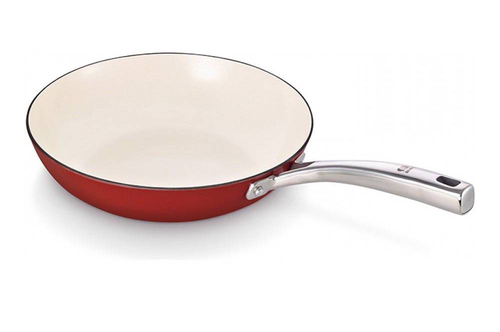 Эта конструкция выпускается одной из лучших итальянских фирм-производителей. Помимо привлекательного дизайна, изделия характеризуется отличным функционалом. Обладает оптимальным диаметром в 240 мм, который позволит приготовить любимое блюдо сразу на несколько персон. Дизайн – уникальный, фирменный. Такое изделие станет отличным подарком для любой хозяйки. Отмечается равномерный нагрев, что исключает риск пригорания продуктов. В качестве верхнего слоя выступает состав на основе олова (полуда). Может применяться в комплексе с любыми плитами. Исключение составляют индукционные.