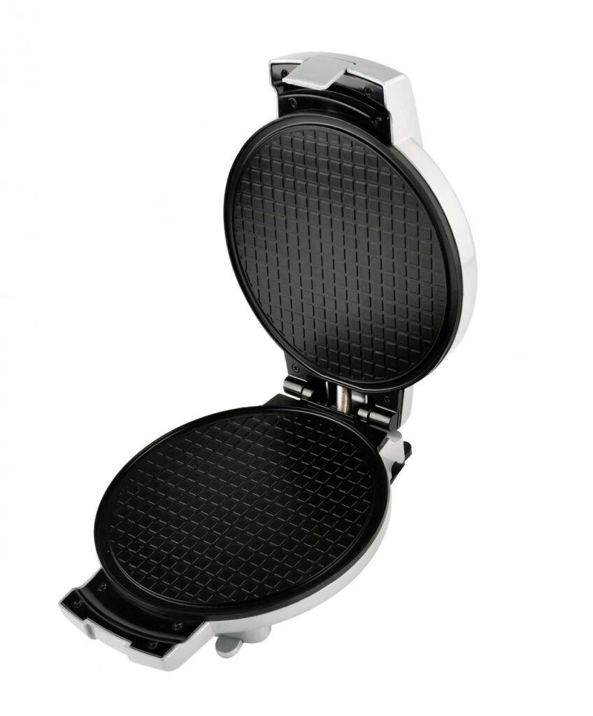 Можно выпечь мягкие вафли или сильно прожаренные и хрустящие. Регулятор работает плавно, его ручка не нагревается во время выпечки. Форма с антипригарным покрытием – круглая.
