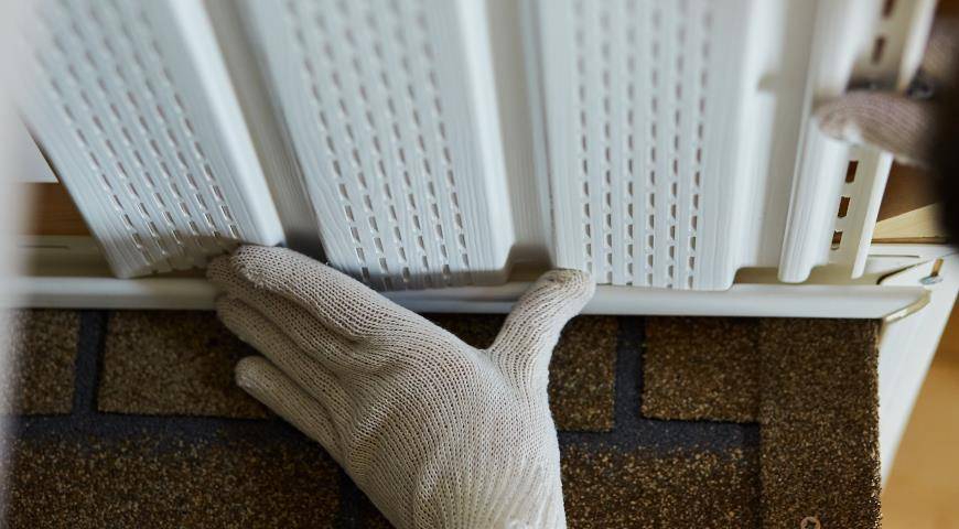 При монтаже сайдинга не стоит забывать и про вентиляцию. Следует отобрать несколько кусков монтируемых панелей и просверлить в них отверстия по всей площади или приобрести уже готовую вентиляционную панель. Монтировать такие «дырявые» элементы лучше в углах – так они будут красиво смотреться и не особо бросаться в глаза.