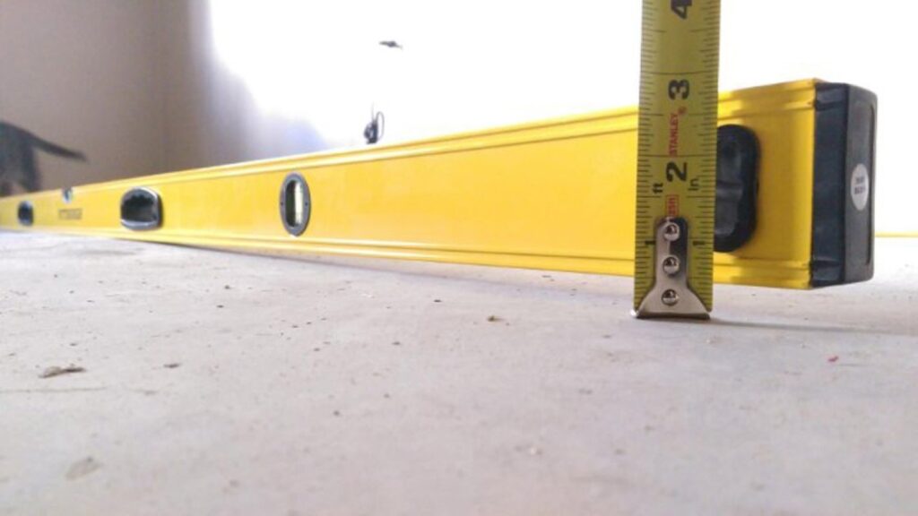 При помощи уровня необходимо определить самую высокую и низкую точки поверхности пола.