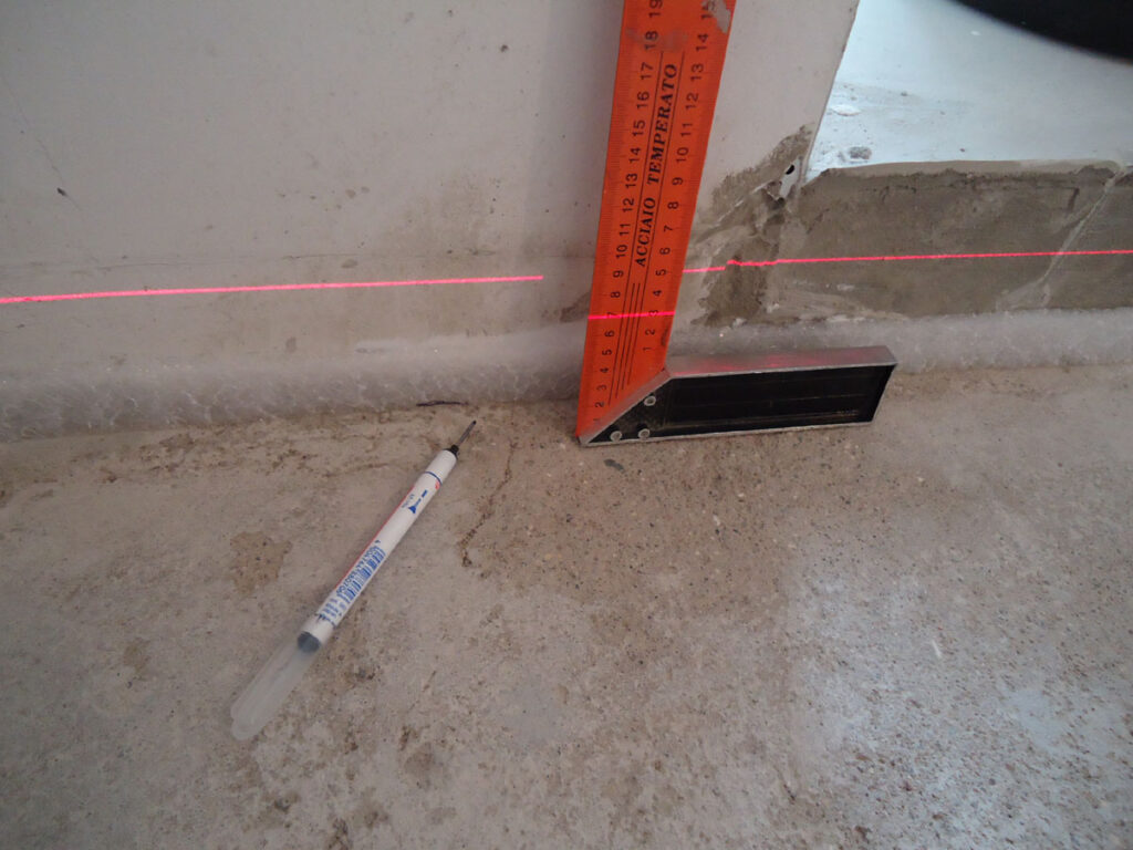 - Прочертить линию от нее по периметру помещения, используя уровень.
