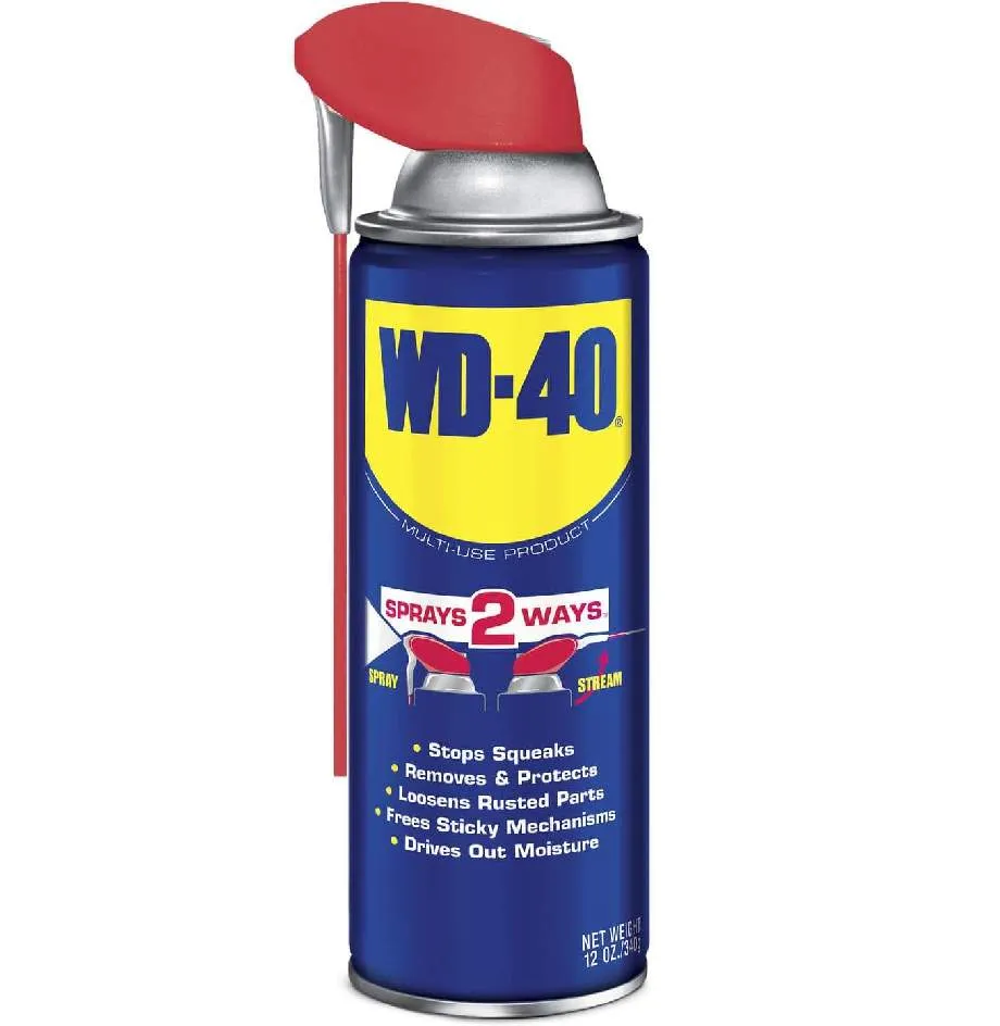 - Если вы находитесь в квартире, вам необходимо найти жидкость для очистки металлических элементов от ржавчины. Это может быть знаменитая WD-40 или керосин.
