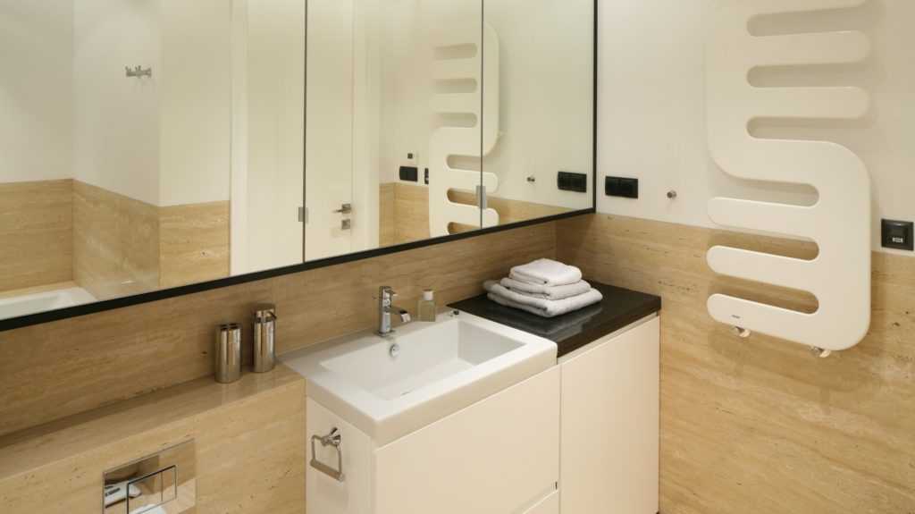 Вертикальный радиатор для ванной комнаты — это незаметное устройство с исключительно эстетичным внешним видом. Узкая панель может быть размещена в любом месте, обеспечивая помещение нужной температурой и контролем влажности воздуха. Форма вертикального радиатора позволяет легко его расположить в пространстве. Его ширина обычно колеблется около 40-50 см, поэтому устройство не займет много места на вашей стене.