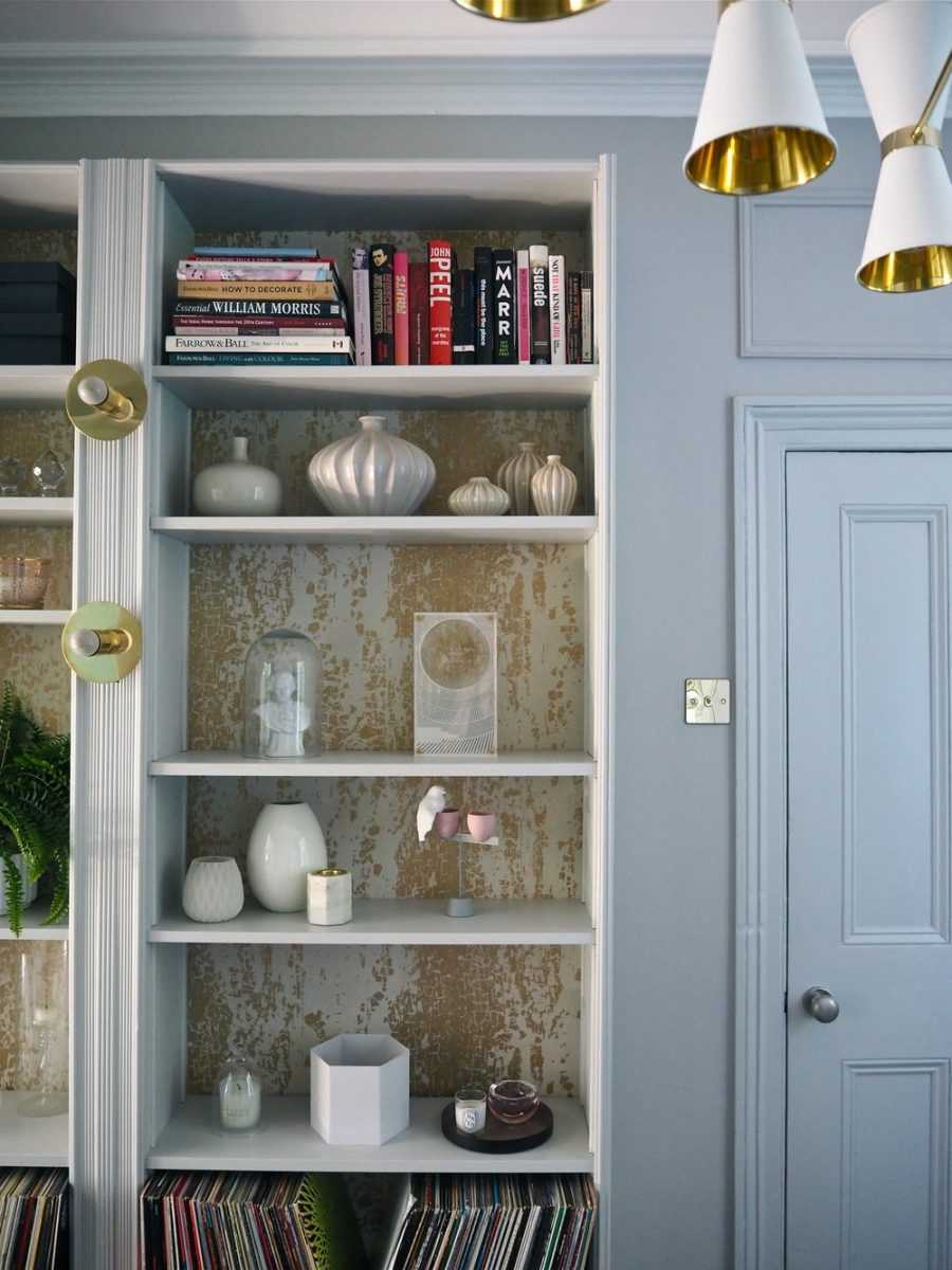 - небольшой стеллаж идеально подойдет для хранения книг или разнообразных предметов декора;