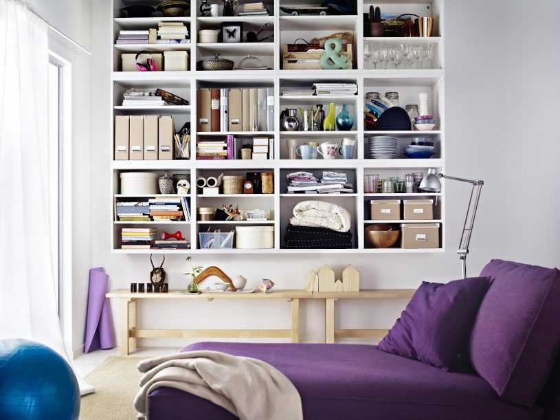 На фото стеллажей икеа видно, что они годятся для любой комнаты в доме или квартире, а также отлично смотрятся в офисных помещениях.