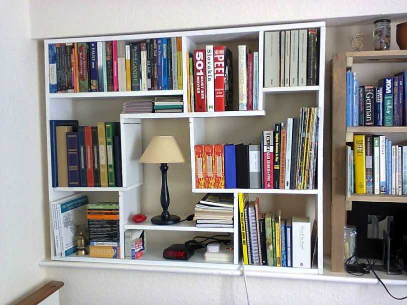 - варианты с наклонными полками для размещения книг, журналов, коллекционных изданий;