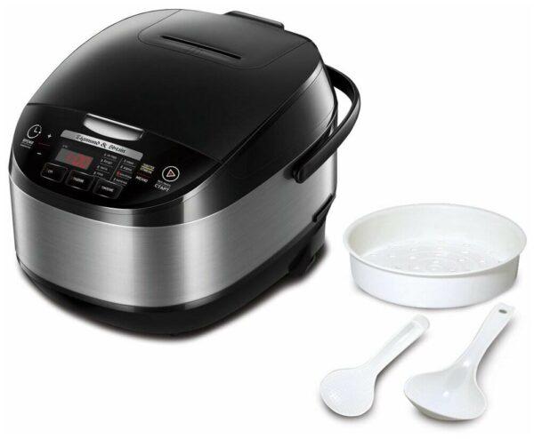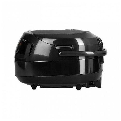 Мультиварка рассчитана на 5 литров, имеет 10 автоматических программ, которые позволяют выпекать, жарить, сушить, готовить йогурт или мороженое. Есть возможность приготовления на пару, в комплекте идет специальная чаша, на которую можно разместить овощи или мясо во время их приготовления. Теплая обработка продуктов происходит с помощью вакуума, крышка техники плотно закрывается, позволяя открывать ее только в конце приготовления блюда. Имеется автоматический подогрев продуктов, который заменяет функции микроволновой печи. Режим отложенного старта позволяет запускать процесс приготовления без дополнительного нажатия на кнопку, будучи на расстоянии.