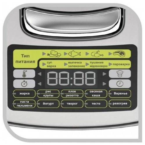 Мощность 750 Вт, 15 автопрограмм, объем кастрюли 5 л позволяют разнообразить меню и ускорить процесс готовки. Стоит отметить, что к стандартному набору режимов готовки производитель добавил: «Холодец», «Варенье», «Мой рецепт plus», «Суфле», что расширяет возможности техники. Двухстороннее керамическое покрытие чаши отличается устойчивостью к царапинам и безопасностью для здоровья.