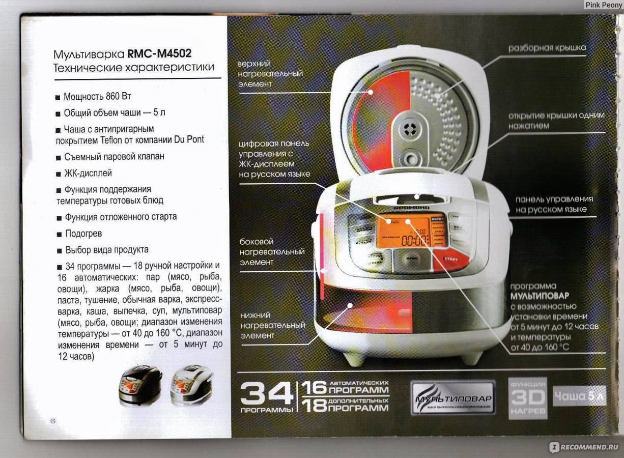 Несмотря на компактность, мультиварка «работает» со многими рецептами. Средний объем чаши – 5 литров. Количество программ зависит от модели, но в среднем их 8.