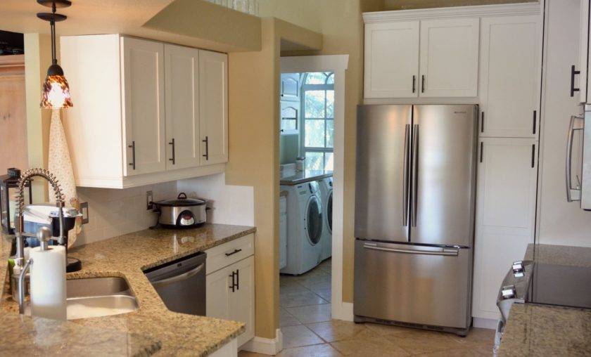 При плохом освещении светло-желтые либо постельные цвета навевают скуку. А в помещении, оформленном в белом или голубом варианте с металликом, отлично смотрится кухонный уголок персикового цвета. Также особенно популярны сейчас такие оттенки, как желтый, лимонный и бежевый.