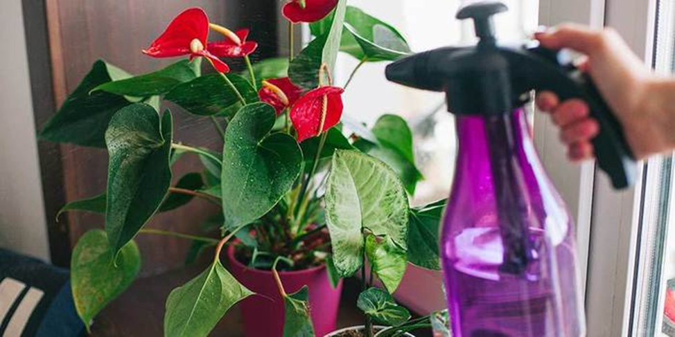 Антуриум и другие любящие повышенную влажность культуры желательно регулярно опрыскивать. Мелкие капельки воды временно повышают уровень влажности воздуха и смывают пыль, которая мешает растениям полноценно осуществлять фотосинтез и дышать