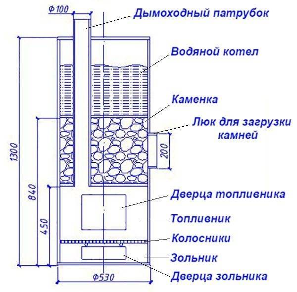 Для оптимального прогрева воздуха параметры банной печи должны быть следующими: